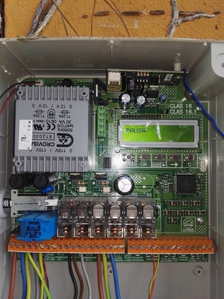 Hoy al llegar a casa descubro que el mando de la puerta del garaje no cierra(una hora antes había abierto sin problemas). Cierro las puertas de forma manual(quitando los topes/seguros) y cuando abro el cuadro, observo que en la pequeña pantalla led aparece "pausa". Si apago el cuadro con el botón de la izquierda y vuelvo a encenderlo en 10 seg, ahora ya está en "preparado" y puedo abrir la puerta perfectamente. Pero al terminar la maniobra, el sistema vuelve a entrar en "pausa" de forma indefinida. Como pongo en el titulo en una Clemsa 16.1.
