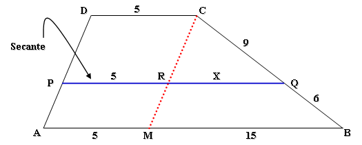 segmentos: el contiguo a la base AB, de 6m, y el otro, de 9m.