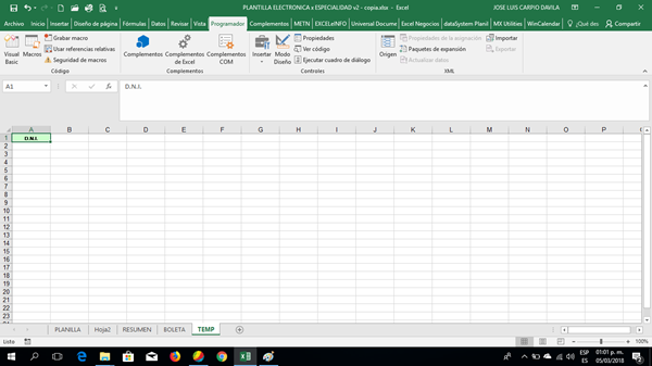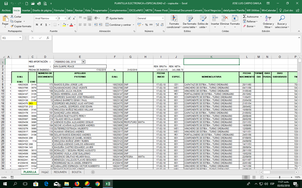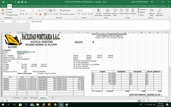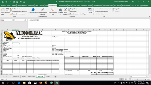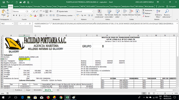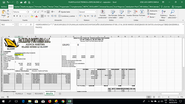 En la Hoja BOLETA, mediante formulas se logra transponer los datos que deberán ser impreso por cada trabajar su remuneración de la lista desplegable.