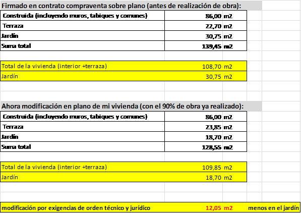 Compraventa sobre plano, modificación de menos metros cuadrados de jardín que los firmados.