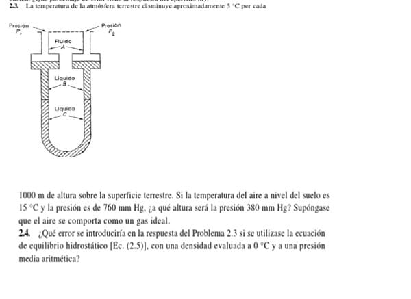 Que error se introducirá en la respuesta de problema 2.3, si se utilizase la ecuación de equilibrio hidrostatico.