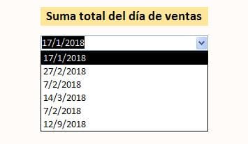 Tengo un cuadro combinado de unas fechas de unas ventas que hago al día, se me repiten las fechas porque son varias cosas, como podría que saliera solo la fecha de un mismo día y que no saliera repetida por ejemplo en la lista me sale 7/2/2018 dos veces pero porque son dos ventas. Al pinchar me sale de todo el día.