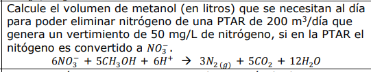 1. Los procesos de desnitrificación vía metanol en aguas residuales sean biológicos o químicos se basan en retirar el nitrato reaccionando con metanol para producir nitrógeno gaseoso, y no lo contrario.