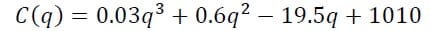 Se ha podido determinar que los costos de producción en su Pyme se comportan de acuerdo con la siguiente función, donde el costo está en miles de pesos y “q” está en unidades: