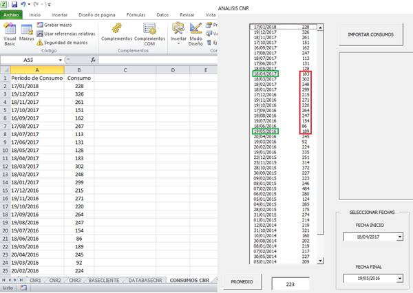 Como sacar un promedio según los datos de un listbox seleccionado un rango inicial y final sacando el promedio entre esos rangos