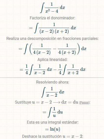 $$\begin{align}&\frac 1 4 \Big[ ln(y-2)-ln(y+2) \Big]= \int dx=x+C\\&\\&ln \frac{y-2}{y+2}=4x+c\\&\\&Despejamos \ y\\&\\&\frac{y-2}{y+2}=e^{4x+c}=e^{4x}·e^c=e^{4x}k\\&\\&y-2=ke^{4x}(y+2)\\&y-2=ke^{4x}y+2ke^{4x}\\&\text{trasponiendo términos}\\&y-ke^{4x}y=2ke^{4x}+2\\&\\&\text{factor común}\\&y(1-ke^{4x})=2ke^{4x}+2\\&\\&y=\frac{2ke^{4x}+2}{1-ke^{4x}}\end{align}$$Saludos