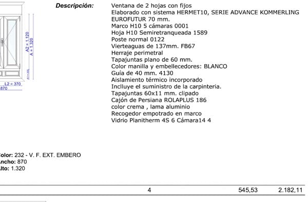 Desearia que me informase de sus características, ya que no se si el vidrio es bajo emisión, tiene Control solar, si el laminado que tiene para su aislamiento acústico y seguridad, si la triple junta sería necesaria, si los vidrios asimétricos son suficientes, si lleva el gas argón para su aislamiento térmico que aquí es imprescindible y no pone nada, si es de triple vidrio para mejorar su aislamiento térmico con Bajo emisión en interior y exterior, cajones de las persianas si tienen los refuerzos térmicos y acústicos en su interior en las tres caras...