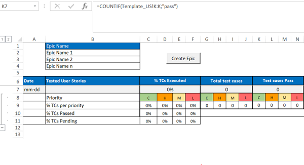 Lo que quiero hacer es: Cuando pulse en el botón Create Epic que me copie el bloque de filas de la 7 a 11 en otra hoja excel tantas vece como Epic Name tenga descritas en la columna B. En este caso 3. Un bloque seguido del otro.