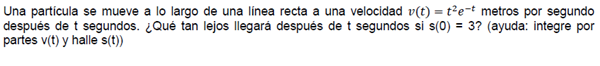 después de t segundos. ¿Qué tan lejos llegará después de t segundos si s(0) = 3? (ayuda: integre por