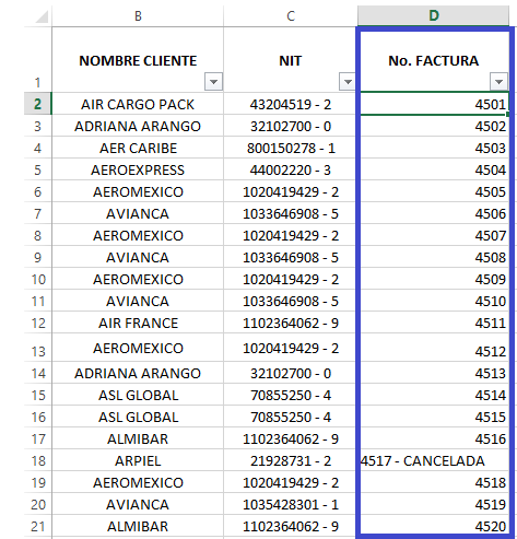 Falta un dato muy importante la pantalla de tu información, la requiero para saber de que columna se va a extraer el numero de la factura