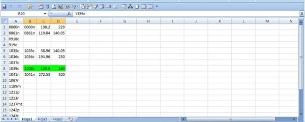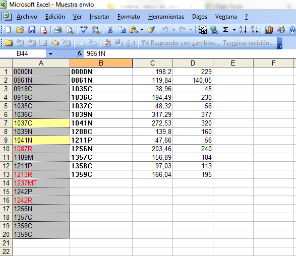 En la imagen veras una fila coloreada en verde eso significa que ese numero no tiene un numero equivalente en la columna A por tanto te saldrá un error, modifique la macro para que te mande un mensaje cada que aparezca un error de este tipo y te señale coloree la fila para que puedas identificar más rápido la fila, si no quieres que te muestre el mensaje y solo te coloree borra las líneas que tengan un '*