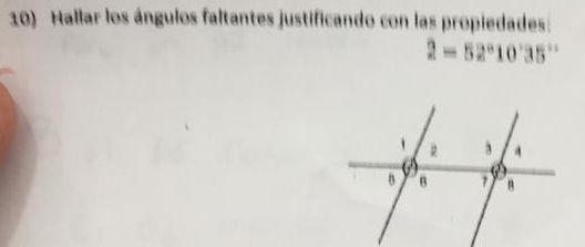 Hallar y justificar propiedades de los siguientes ángulos