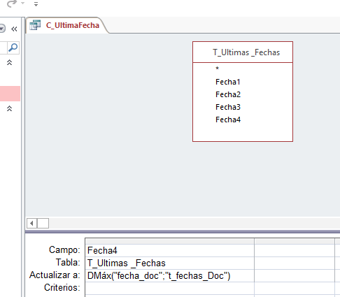 Tengo una tabla con 4 columnas 3 columnas tienen una fecha y la columna 4 esta vacía y necesito actualizarla con los datos que tengo en una consulta.