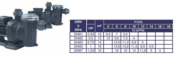 En las espedificaciones del motor son: 4 Hm 26,5 m3/h