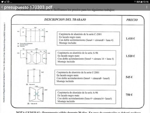 La carpintería, me dicen que para Madrid con aluminio es suficiente, que no necesito PVC