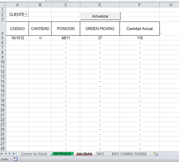 Gracias por la info Dante! Hay algo que hay que modificar en el código, las hojas activas que tengo en el libro son Control de Stock, ENTRADAS y la otra es SALIDAS. La de PICKING la reemplace por entradas y salidas, hay algo en el codigo que no me esta andando