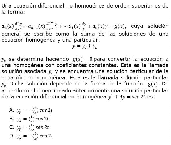 Ya que es una función del tipo seno, (usamos coeficientes indeterminados)