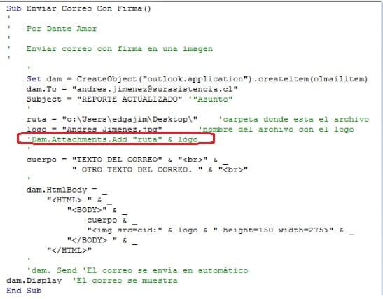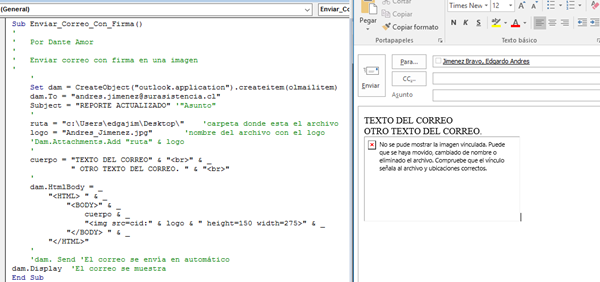 Macro para insertar una firma en Outlook que contenga texto e imagen