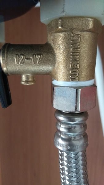 A parte de la prueba de presiones que he realizado (la he comentado en la respuesta del compañero Oscar) y que ya me está descolocando. Al estar hoy sólo en casa sin que nadie toque nada y revisando yo personalmente todo lo que ocurre. Hoy si que he visto como la válvula de seguridad goteaba, el manómetro de la reductora marcaba 8b, y la válvula de seguridad goteaba. En la válvula de seguridad (la que venia con el propio termo), por el orificio de evacuación pone 12-17, si eso significa que a los 12b abre, me parece una burrada, y aún siendo así, si la válvula de seguridad se supone que es anti retorno, no entiendo como puede ser que al calentarse es agua, aumente la presión en la parte anterior a la válvula, es decir, donde tengo la reductora con el reloj situada a 3metros del termo.