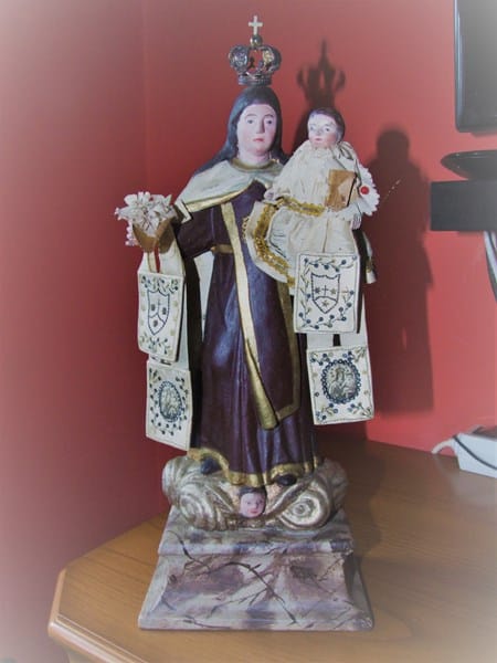 Desde hace mas de 150 años se encuentra en mi familia una imagen de la Virgen del Carmen con niño de madera maciza de unos 40 centímetro de altura desde corona a fondo, por comentarios de mis abuelos en Valencia de Miño (Portugal), se encuentra una de iguales características que acompaño a las tropas Portuguesas en la derrota a las de Napoleón, me pueden informar si aparte del sentimental tiene algún valor.