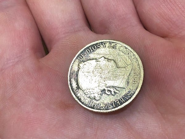 ¿Tengo una moneda de Isabel II 40 céntimos de escudo de 1865 y me gustaría saber si son de plata... La mía por que tiene un tono de color dorado suave en la patina? Un color amarillo limon suave