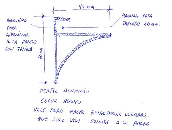 Estoy buscando este perfil de aluminio (o similar). La tienda donde los compraba cerro por la crisis y la competencia de una gran superficie de bricolaje, que por supuesto no tiene esta maravillosa ne inteligente solución.