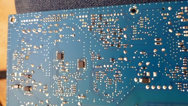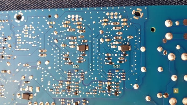 He cambiado los condensadores del círculo 2 por otros iguales de otra fuente que tenía aquí pero sigue igual se va el sonido a los 10 min, compro todos los de esa zona bus s y pruebo ? Ahora he notado que donde está el.disipador negro entre el grupo 2 y 10 está caliente también