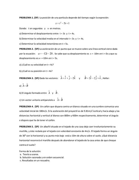 3) Velocidad instantanea = dx/dt = 2t - 5 m/s..........que para t = 5 s. esta dando = 2 x 5 - 5 = 5 m/s.