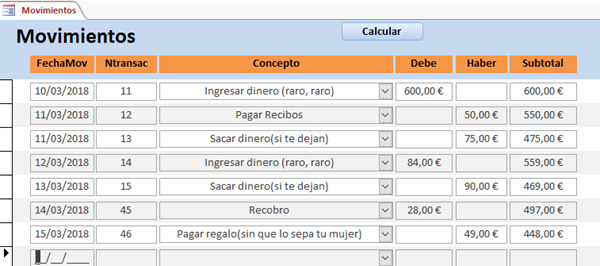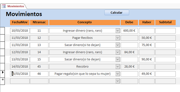 Yo quisiera sacar el subtotal en una cuenta con debe y haber, columna por columna. Pude sacar el saldo total con: =Suma(nz([Debe])-nz([Haber]))=Suma(nz([Debe])-nz([Haber])) pero para sacar el subtotal se me esta complicando. Agradezco pronta respuesta
