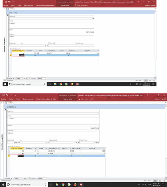 Tengo dos tabla 1era. Es nota con los campos (idventa, nota, fecha, cliente, subtotal, iva, valor de iva y total nota)