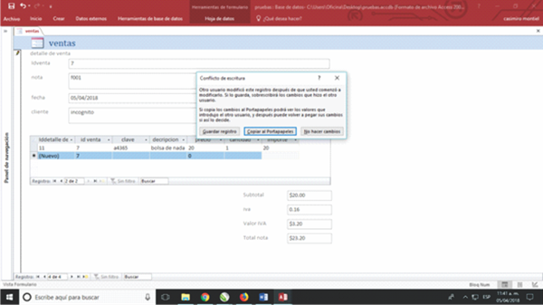 Pero no me guarda la suma del importe del subformulario detalles de la venta en el campo subtotal de la tabla nota