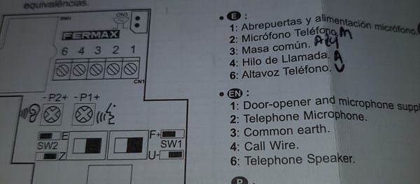 No se si me podrán ayudar tengo un problema cambie el telefonillo y no tengo el esquema del antiguo y no se si coloque mal algún cable ya que apenas se escucha o no se escucha ni el timbre ni el audio el telefonillo colocado es un fermax 3399 adjunto fotos del telefonillo tal y como lo tengo conectado y del portero no se si alguien me puede ayudar y ve algo extraño,, muchas gracias.