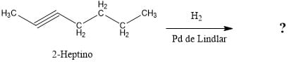Los alquinos son hidrocarburos que presentan triples enlaces en sus cadenas carbonadas. Dentro de las reacciones que experimenta éste grupo funcional está la hidrogenación de alquinos, la cual permite obtener alquenos utilizando un catalizador como Paladio (Pd) e hidrógeno. La hidrogenación ocurre con estereoquímica sin permitiendo un alqueno cis, es decir, libre de su estereoisómero trans. Teniendo en cuenta la información anterior identificar el producto de la reacción A, la cual parte de la reacción del 2-Heptino en presencia de H2/Pd.