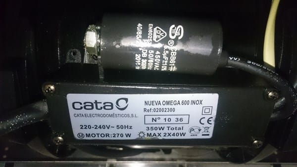 Hoy he tenido un poco de tiempo y he abierto la campana y no se parece a la de los vídeos, primero he abierto la botonera. No tiene nada de aceite en el interior, la plaquita contiene un par de resistencias y la luz, no le he dado la vuelta pero aparentemente nada quemado. No se si se puede abrir más la botonera.