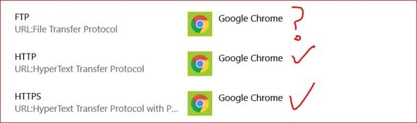 Tengo todo con CHROME, los programas predeterminados y los protocolos HTTP también, abrir con Chrome.