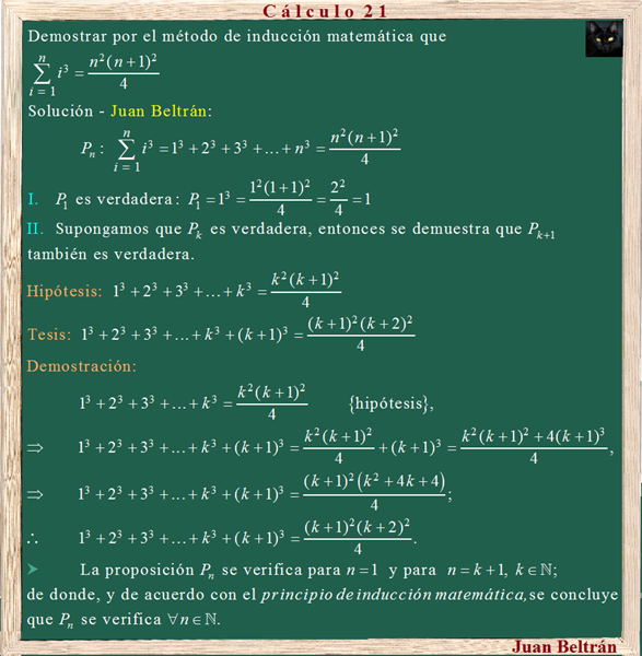 Quien me puede colaborar con este ejercicio de ecuaciones lineales. Demuestre que 1^3+ 2^3 ... N^3 = (n(n + 1)/2)^2.