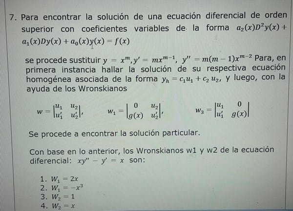 No encuentro coincidencias entre mis Wronskianos y los de tus respuestas posibles.
