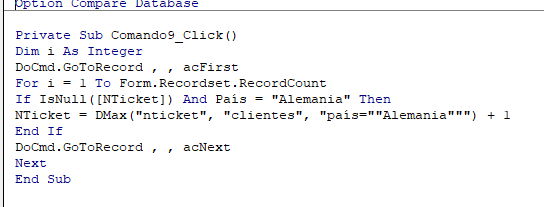 Lo que quiero crear un botón que me introduzca números correlativo en NTicket, ordenados por fecha menor a mayor y solo cuando el estado = 3. También quiero que los registros que ya tengan el NTicket puesto queden como están y el nºcorrelativo siga a partir del mayor de NTicket.