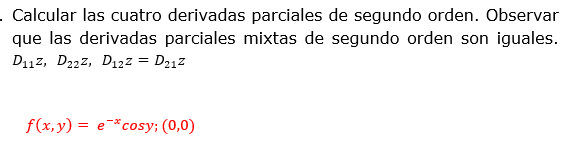 Desarrollar el siguiente ejercicio derivadas parciales mixtas de segundo orden