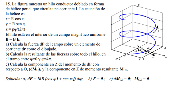 La Fuerza elemental dF será perpendicular al plano determinado instantáneamente por la trayectoria de la hélice. Y por la línea de campo B... o sea la línea coincidente en cada punto Con el radio de la Hélice.