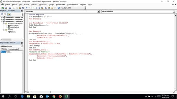 En la variable "FechaFinal" coloca la que desees pero RESPETANDO el mismo formato. Luego activas la macro "Actualizarreloj" y comenzará a "correr" el contador. Para detenerlo usa la macro "Detener_reloj"