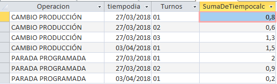 Se tendría que sumar automáticamente y aparecer el total de 0.8+0.6+1.3, ya que la operación y el día son los mismos, etc.