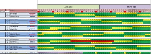 No me importa e formato de esto, si es en una tabla, si es tipo calendario, o lista, o como sea, sólo me interesa poder tener cada día a quien le corresponde controlarse.
