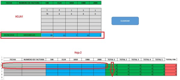 Copiar un rango de celdas (A5:E5) de la hoja 1 a la hoja 2 en (C5:G5) Y si ya la fila de la hoja 2 tiene un valor escribirlo abajo en la fila C6:G6 para que el valor que este en C6:G5 no se borre y así sucesivamente.
