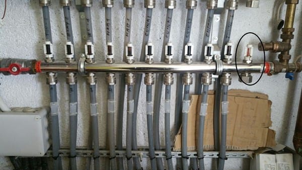 Un distribuidor de material para suelo radiante le aconsejó meter en la aguja del circuito 5 litros de producto limpiador, el cual debía dejarse 15 días recorriendo los circuitos.
