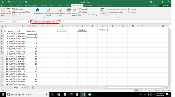 NOTA: el "-1" de la formula es para saber cuantas veces esta repetido e ID, ya que sin el -1 el que no se repite daría 1, y eso podría confundir, así que el 0 me indica que esta 0 veces repetido.