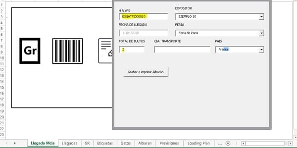 En la hoja "Llegadas" del libro hay un listado completo de las llegadas. Esta hoja se alimenta con un formulario, donde, ponemos en uno de los campos el total de bultos , utilizando como referencia de identificación un numero master y se crea la cantidad de líneas según del campo total de bultos en la hoja Llegada.