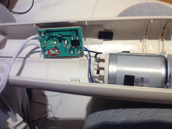 Nada. Dicen que nanay. Yo lo he abierto y trae el motor y debajo una pequeña placa de circuitos. Nada huele a quemado y yo no veo nada raro, seguramente porque no tengo ni puta idea.