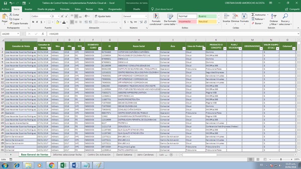 Entonces, mi data tiene una columna de asesor de ventas (esta columna es donde están los criterios que en algunos casos se tendrán en cuenta y en otro si) resulta que hay muchos asesore, pero son 6 los que debo omitir en ciertos casos, como pueda que se omita solo uno de esos 6, pueda que se deba omitir 2, 3, 4, 5 o los 6 al tiempo. La siguiente imagen muestra la estructura del informe, donde simplemente elijo una fecha, un año y un mes y la tabla me trae la cuenta y suma de la fecha especifica y a la derecha la cuenta y suma del año y el mes elegido.