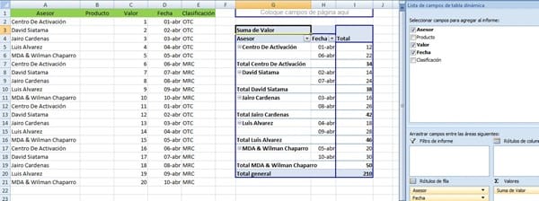 En la columna "a" de una data tengo diferentes asesores, donde a su lado se rellenará una información con un producto, un valor, la fecha de la venta y una clasificación "OTC" y "MRC". Resulta que tengo que hacer un contar y sumar si. Conjunto según esos criterio, producto, fecha y clasificación por un lado. Y por otro lado producto, Año, mes y clasificación por otro lado.